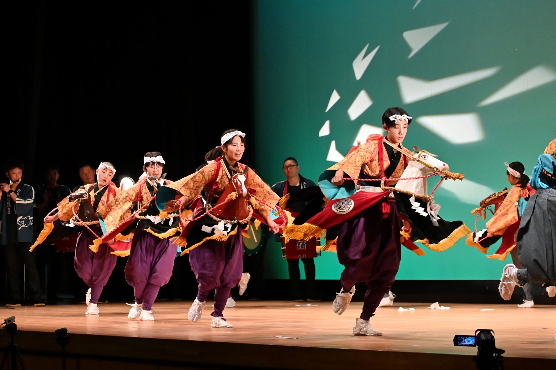 駒踊りは、盛岡市(旧 玉山村)外山にわずかに残っていたものを、馬産地のゆかりで昭和10年ころ、当時の柴田兵一郎氏等の発意で、外山から指導者を招き、さらに若干の手を加えて今に伝えられている。踊り手は、馬子、ササラ(道除けの役)、駒からなる。馬子が馬子唄を歌いながら登場する「通り」、続いて笛、太鼓、鉦がにぎやかに奏でます。若駒の様子を軽快、躍動的に表現している。
